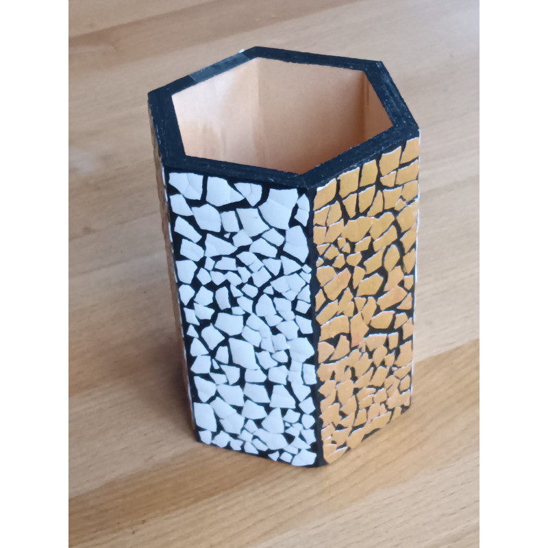 *Boite en bois décorée avec des coquilles d' oeufs.
