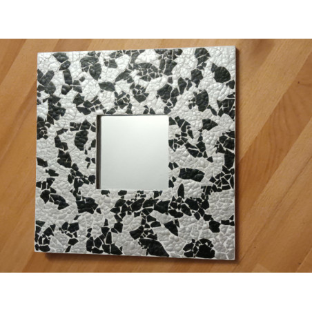 *Petit miroir recyclé et décoré avec des coquilles d 'oeufs de couleur argent et noir.