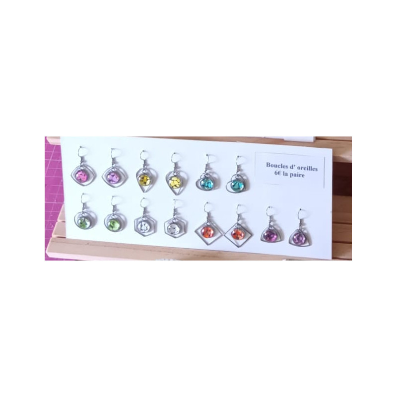 Paire de boucles d' oreilles garnies avec des coquilles d' oeufs.