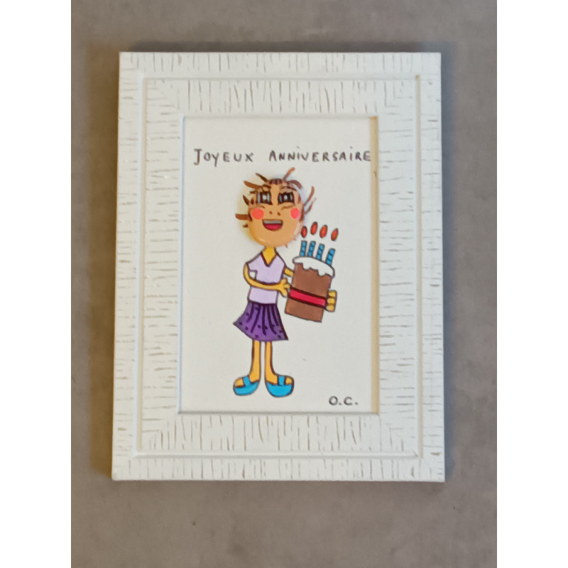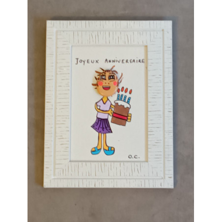 Tableau sur toile avec galet peint ''Joyeux anniversaire''