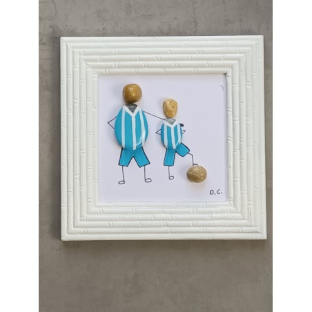 Tableau avec galets peints sur le thème du foot
