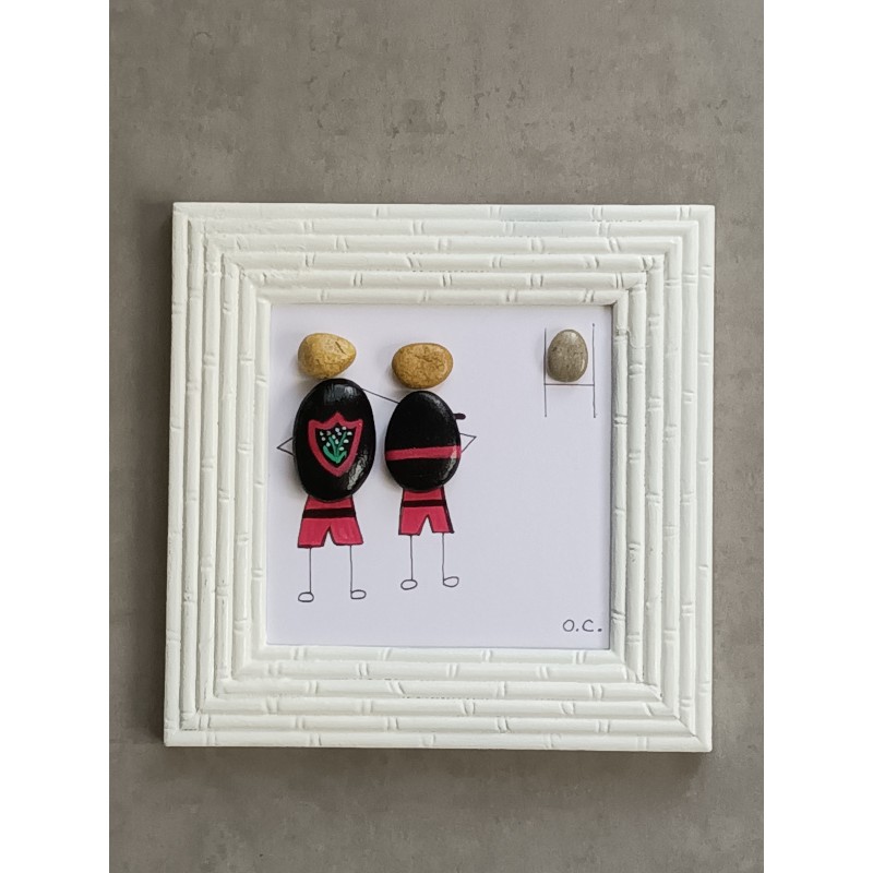 Tableau avec galets peints sur le thème du rugby